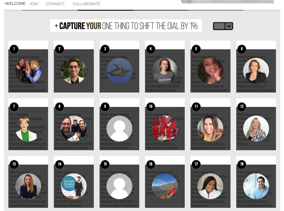 Those who want to be the One Percent...Those who want to shift the dial by One Percent...Those who want to partner with those willing to do their One Percent...